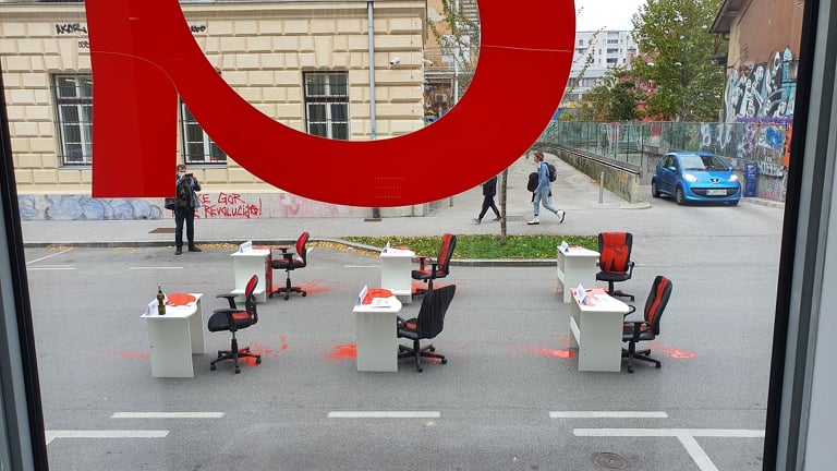 Včeraj, 23. 10. 2020 so pred Ministrstvo za kulturo nekakšni »umetniki« postavili nekakšno »inštalacijo« (na sliki). Češ, da gre za protest proti temu, da Ministrstvo za kulturo zahteva prenovo stavbe na Metelkovi 6, ker je ta v precej problematičnem stanju. Jedro spora je v tem, da bi se morale nevladne organizacije, ki delujejo na Metelkovi 6 začasno odseliti. Nekatere od teh nevladnih organizacij niso plačevale najemnino… in to kljub temu, da so od davkoplačevalcev dobile dobesedno milijone. (Namreč nevladne organizacije na Metelkovi 6 so od leta 2003 do danes dobile okrog 60 milijonov evrov!)